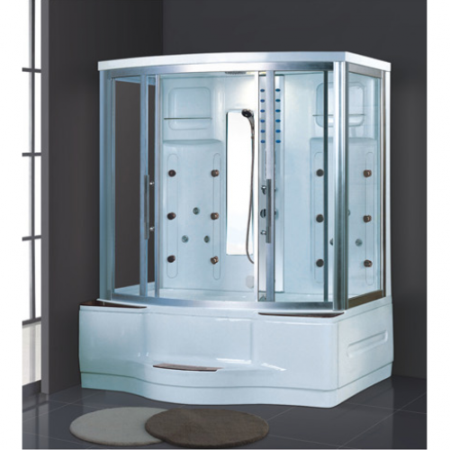 Function and configuration:Smart touch large LCD screen+4.5KW steamer+Radio and CD connection+Temperature indication/adjustment+Time indication/adjustment+Exhaust fan and speaker+Reading light+Back massage nozzle +Top Shower+Movable shower+Functional changeover switch+Surfing whirlpool massage+Manual pop-up drainer with overflow protection+Auomatic sterilization after shutdown