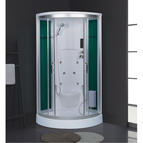Function and configuration:Smart touch large LCD screen+4.5KW steamer+Radio and CD connection+Temperature indication/adjustment+Time indication/adjustment+Exhaust fan and speaker+Reading light+Back massage nozzle +Top Shower+Movable shower+Functional changeover switch+Manual pop-up drainer with overflow protection+Automatic sterilization after shutdown