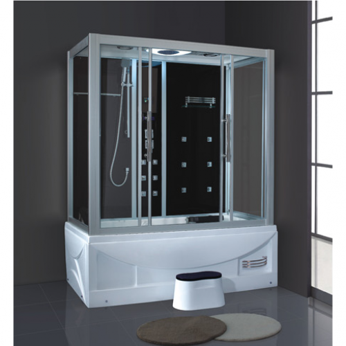 Function and configuration:Smart touch large LCD screen+4.5KW steamer+Radio and CD connection+Temperature indication/adjustment+Time indication/adjustment+Exhaust fan and speaker+Reading light+Back massage nozzle +Top Shower+Movable shower+Functional changeover switch+Surfing whirlpool massage+Manual pop-up drainer with overflow protection+removable seat