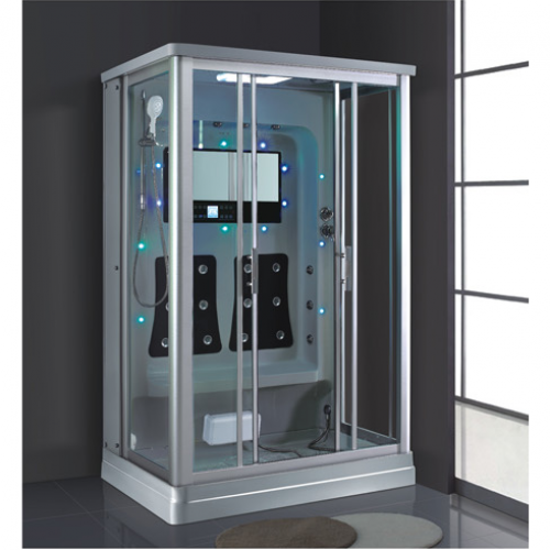 Function and configuration:智能触摸式大液晶显示屏,蒸气浴3KW,收音机,外接CD,温度显示/调节,时间显示/调节,排气扇,照明灯,背部针刺按摩,顶部花洒,活动花洒,功能转换,防溢保护,背部按摩