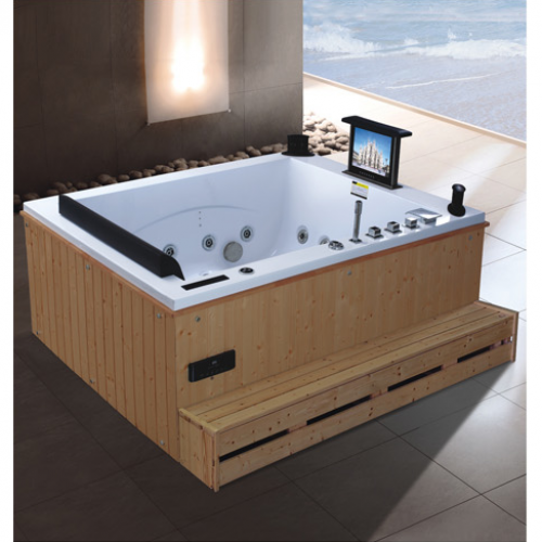 功能与配置: 1pcs电脑控制面板,1×1.2马力的水泵,10pcs水射流,1×400的空气泵,6pcs空气射流,1pc七彩LED灯、冷热水开关、过流保护、排水器、两个枕头,手持花洒、无线电、臭氧发生器、恒温+杀菌+过滤器,电视